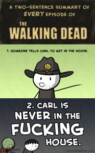 The Canadian One LOVES The Walking Dead. I am terrified of it and, having watched two episodes with him, promptly gave up on it. However, from what he tells me, I feel this picture sums up the storyline nicely: