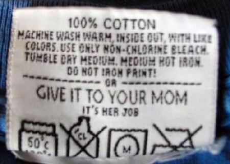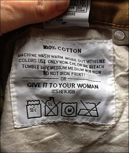 I mean, maybe I’m wrong here, but whoever looks at that label and thinks, ‘Yes, you’re correct washing label on my jeans, my woman should be doing my laundry. Woman, where are you?! Come do my laundry!’