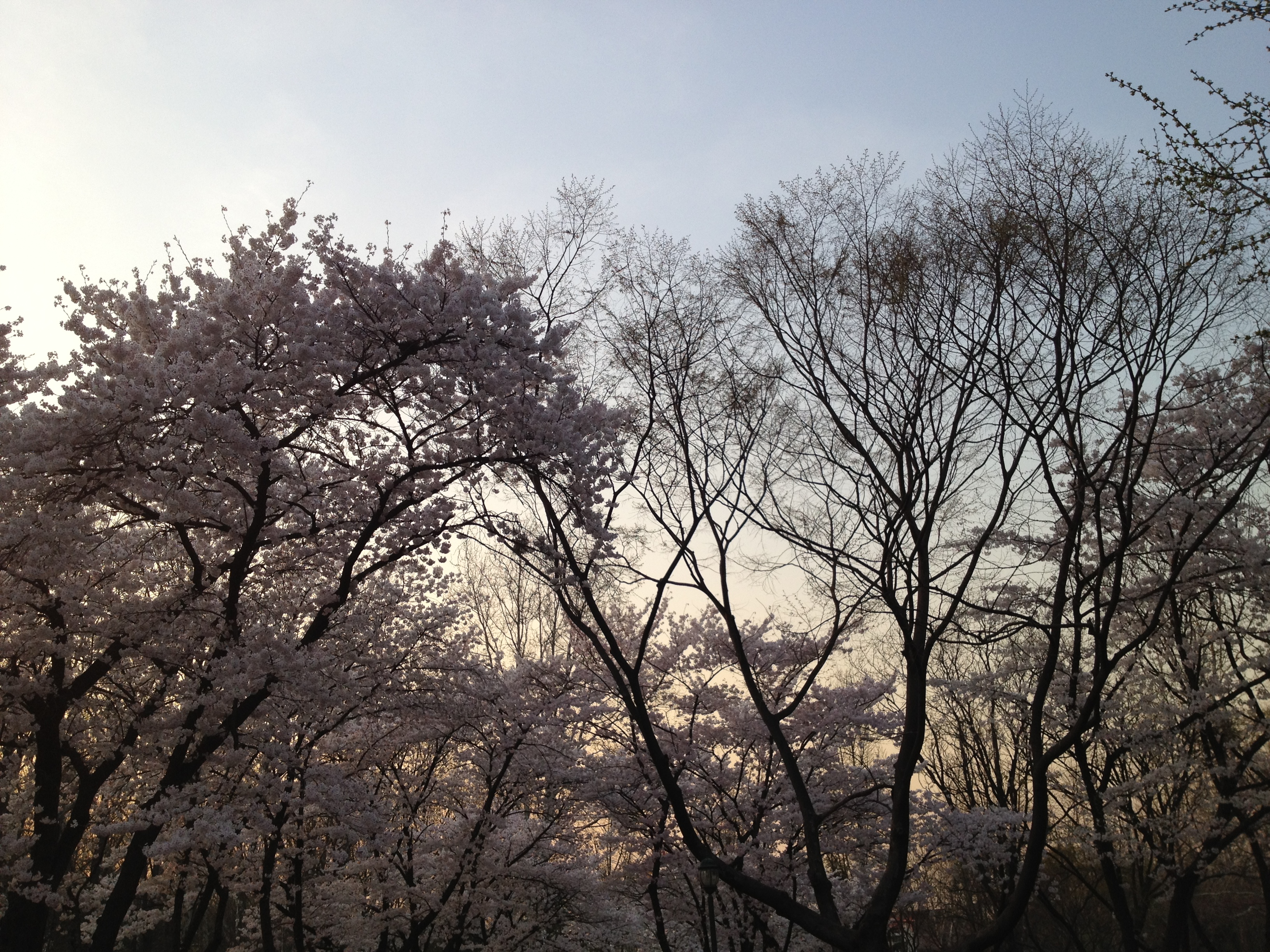 Now, I LOVE the cherry blossom trees. Love them! This year, The Canadian One and I decided we would venture for a romantic walk among the cherry blossoms on a school day, rather than on a weekend when everyone and their Korean mother were out in full force. The first weekend in half a year where you could safely go outside sans jacket and we were opting to stay far away from local parks and cherry blossom hang outs.