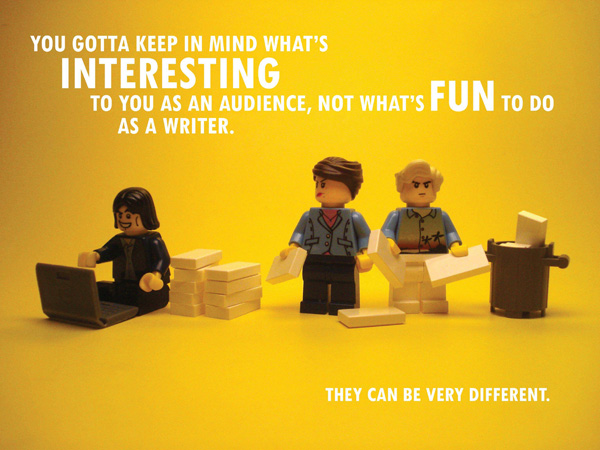 BUT in case, you don’t want to read all the rules in a boring black-text-on-white-background format, Alex Eylar’s got you covered. Alex Eylar, aka ICanLegoThat, is a Lego Master in my opinion (and shall be the star of an upcoming Tuesday Timewasters) and his illustrations of Emma Coats’ rules only make them even more appealing to follow.