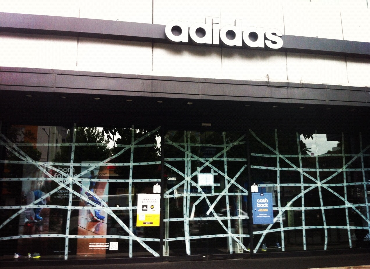 Windows were taped up. Flags brought indoors. Texts sent by our schools with warnings to ‘stay indoors for safety’ and ‘not to go outside’. The Canadian One and I stocked up on emergency water, bread, milk, beer, cigarettes, soju and Doritos, the staples in life.