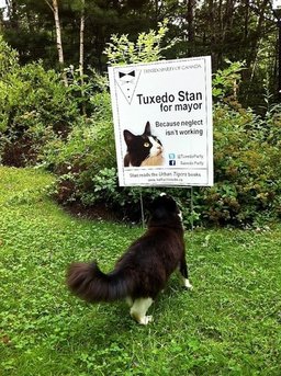 THIS cat, Tuxedo Stan, is running for mayor of Halifax, Nova Scotia, Canada….Oh Canada!