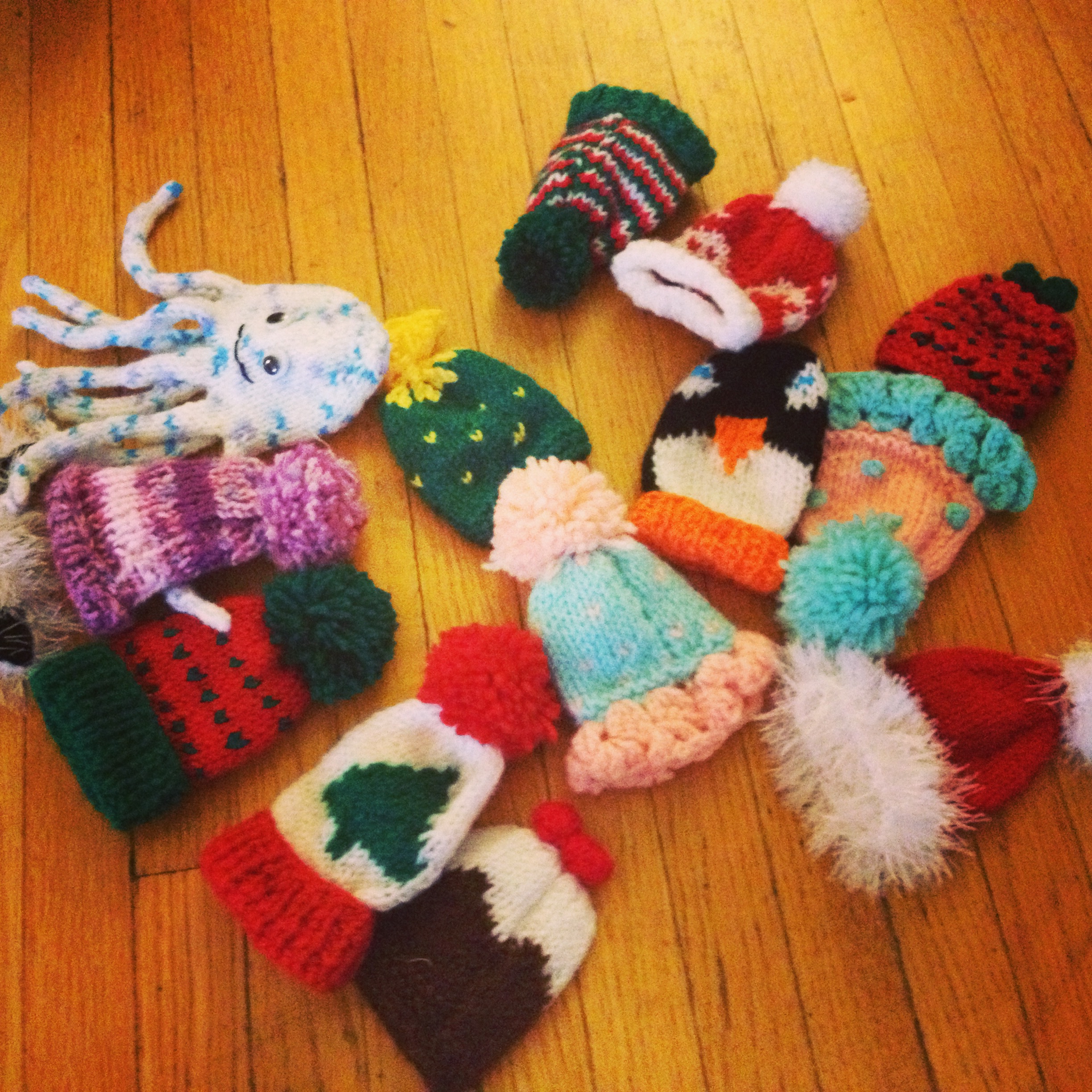 About a year ago, my mother took part in a knitting campaign that involved knitting lots and lots of small hats to fit on Innocent smoothie bottles: