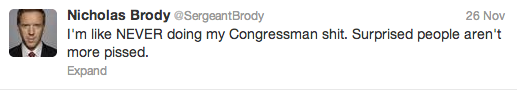 Does anyone else hope the daughter is written out this year? Anyone? Speaking of Homeland, for anyone who missed it, Aziz Ansari for a brief time last year was tweeting as SergeantBrody and it was awesome…until he got outed and stopped but still!