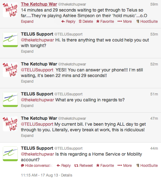 Tonight, I came home, heated up my stew and sat down to wait for Telus to answer their phone.