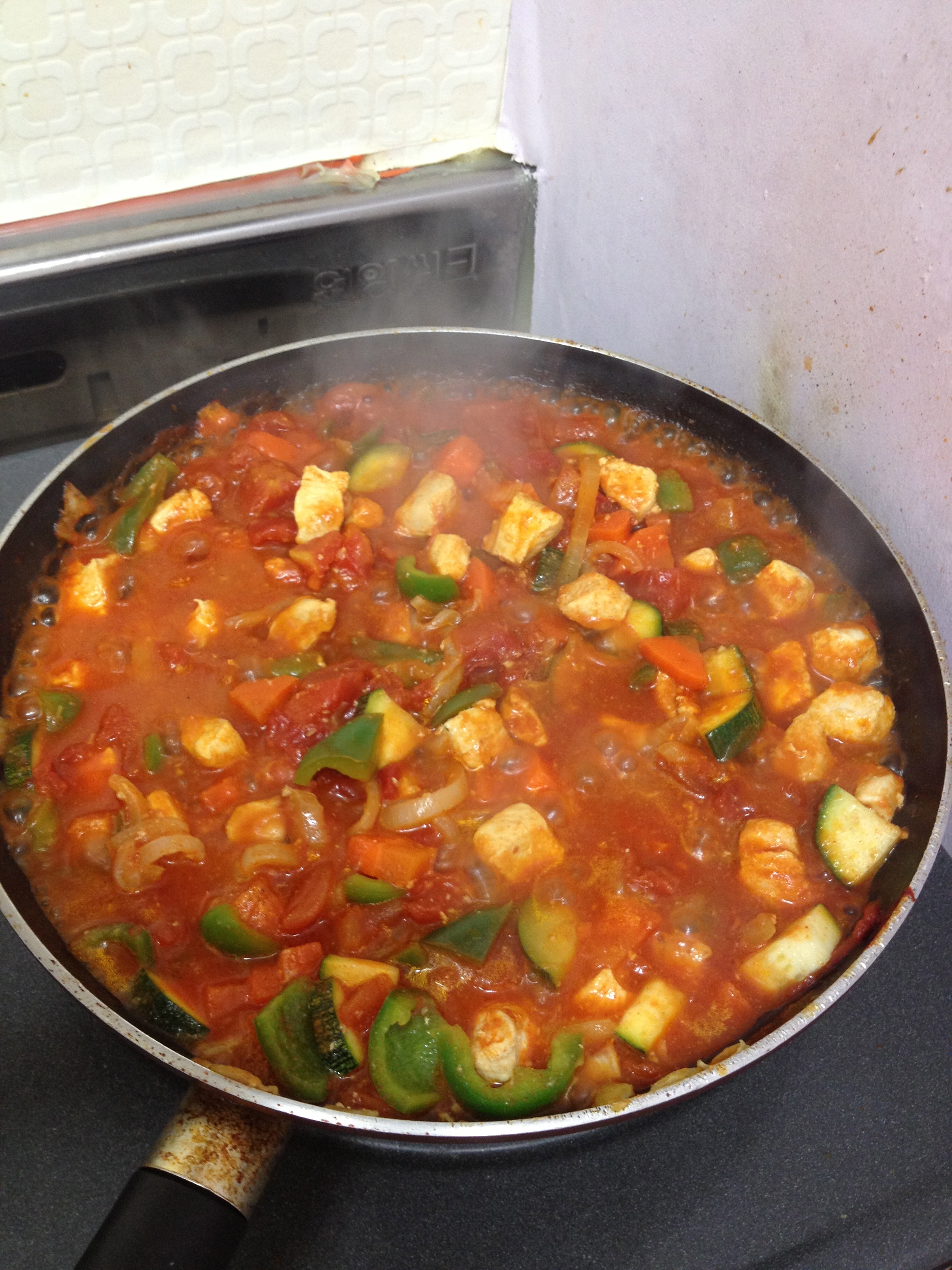 1. Fry onion and garlic for a few minutes over a medium heat. If using carrots, add now. Add chicken and fry until browned. Add any other vegetables you’re using and continue to fry for a few more minutes.