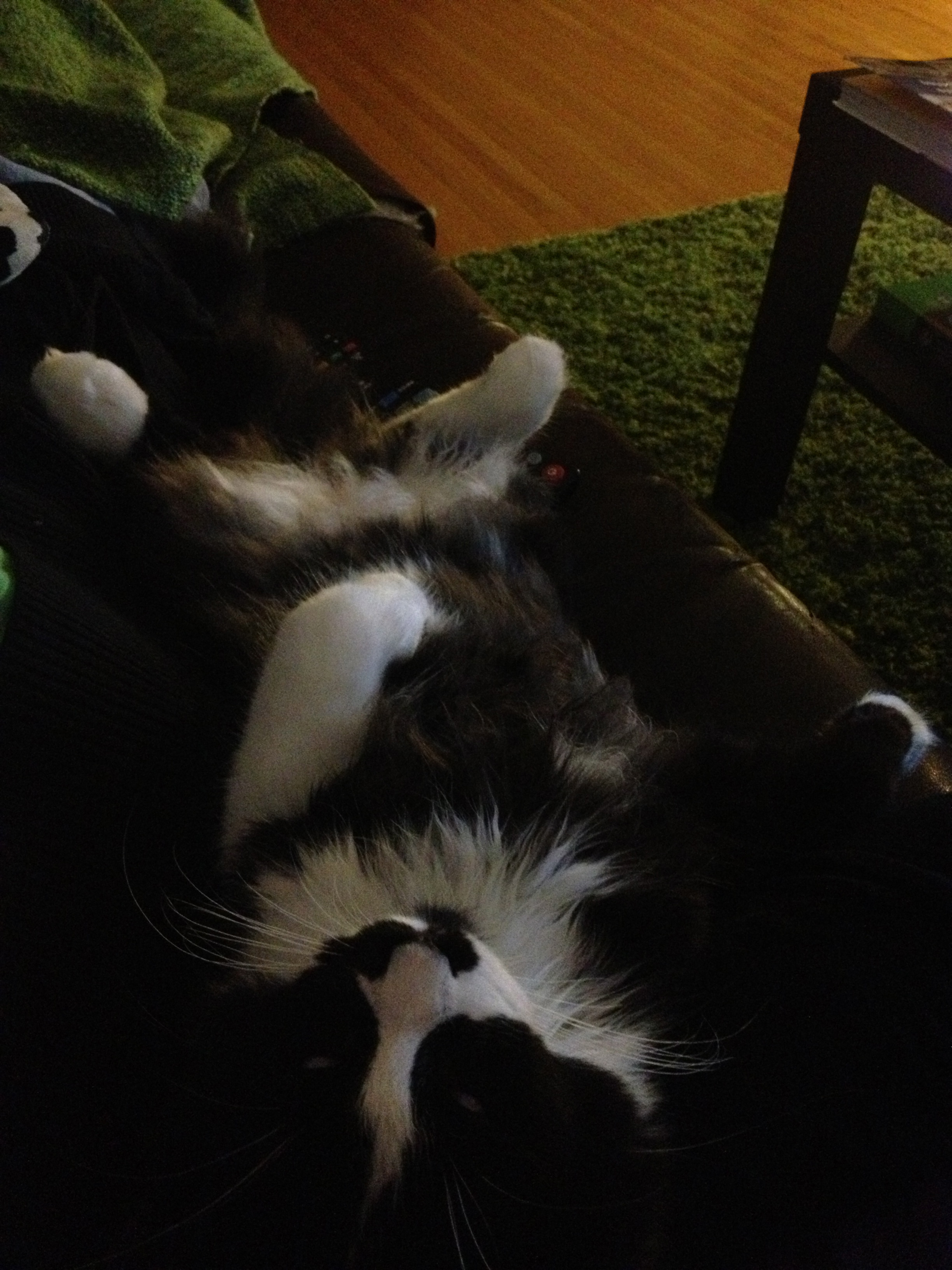 Last year, I had no cat. Now I have a cat and every day is like frikkin cat week. He’s recently learned how to sleep in the bedroom at night-time without waking me up, paws on either side of my face, licking my lip and meowing at me.