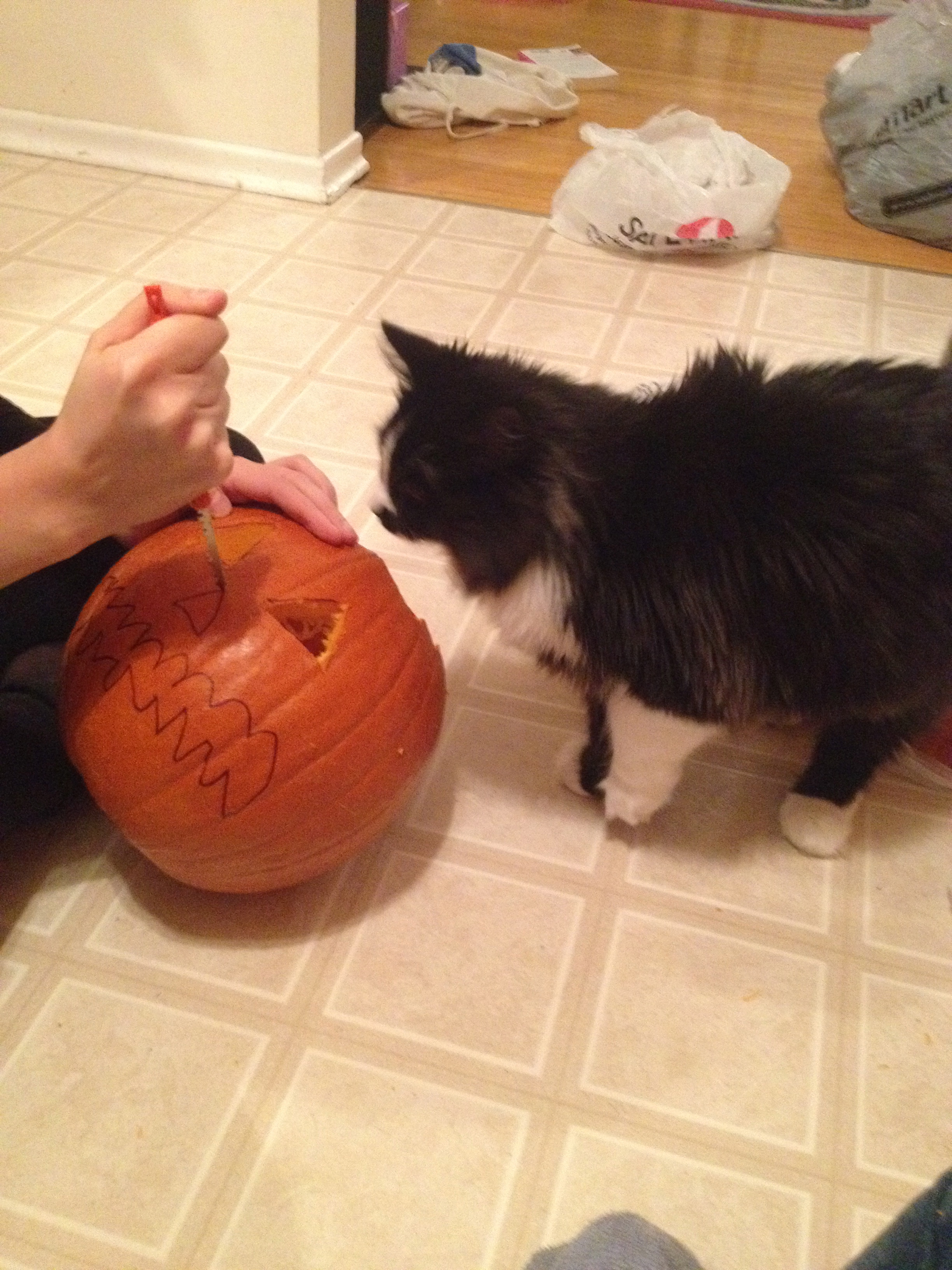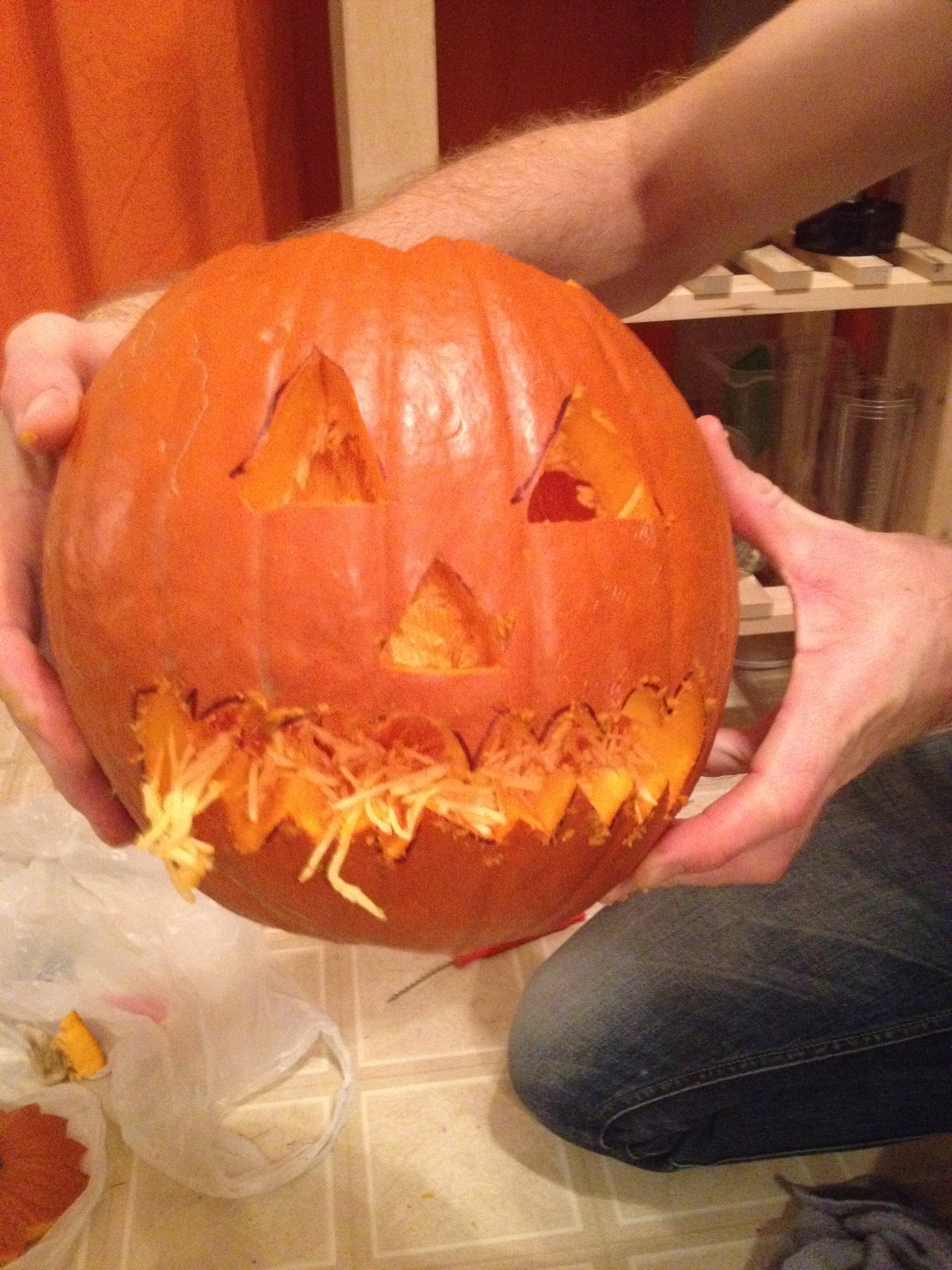 After a false start last week in which we bought a pumpkin, then it became soft and we had to buy a new, The Canadian One finally managed to get around to teaching me the ways of the pumpkin.