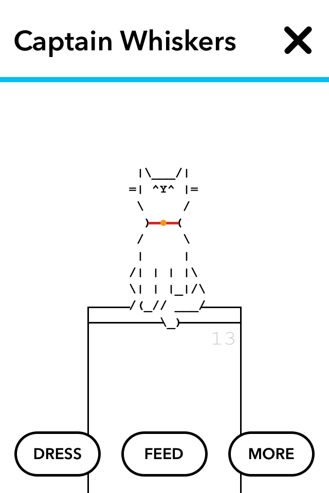 I didn’t name him. And I haven’t reached the level where I’m allowed to rename him yet. Although, if I want, for 99cents I can buy him a pirate outfit. No, seriously.