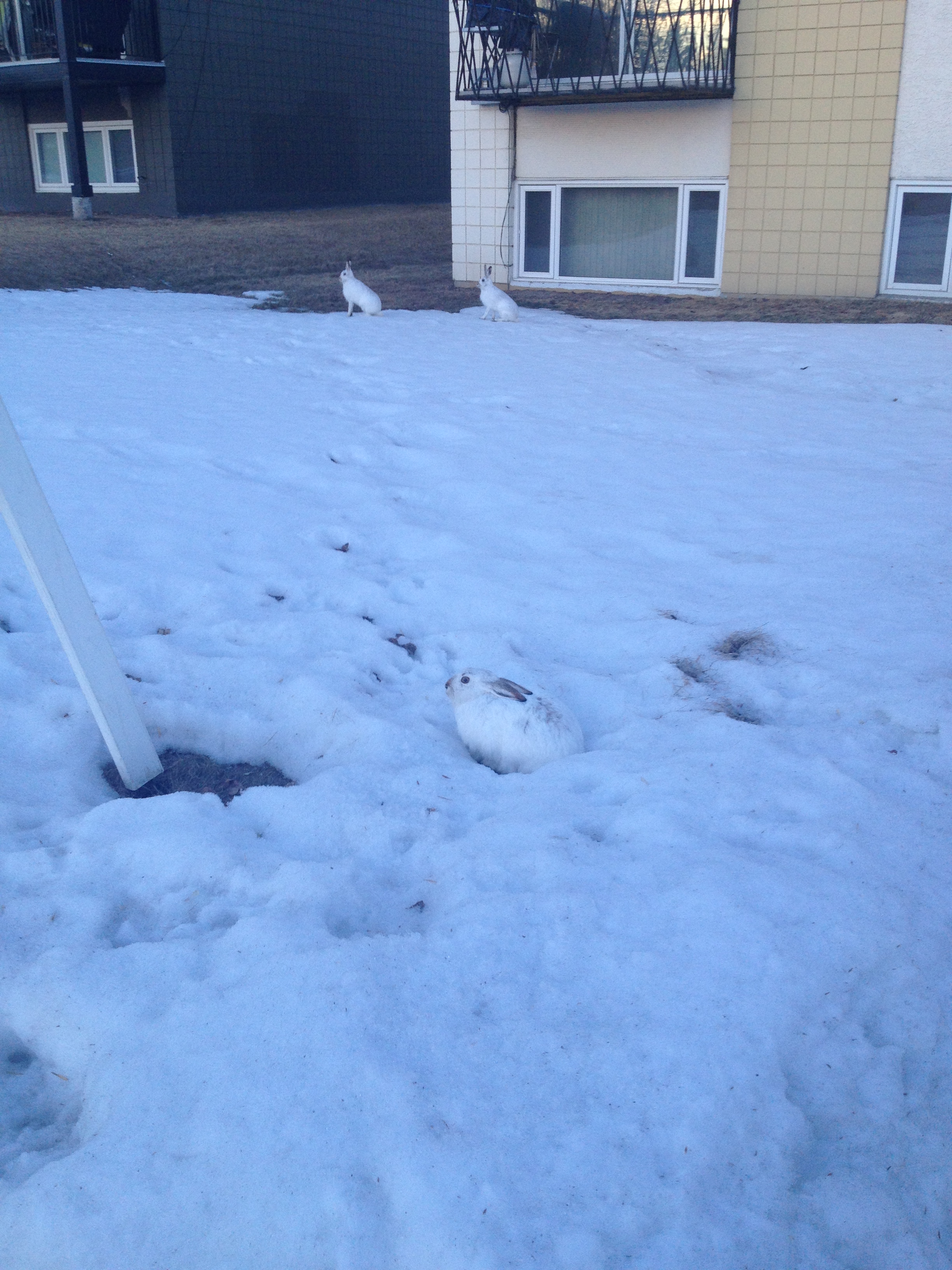 The Canadian One and I worked as a duo and several times I spotted what looked like a white furred creature in the bushes which would always ALWAYS turn out to be a bunny.