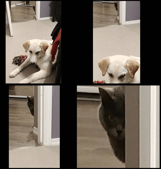 Back at home, my mission to befriend my siblings was going…well…ish….I quickly won over one of my sisters, Purrkins. She had grown up with a family dog but was surrendered to AARCS when she and her four kittens were viscously attacked by the same family dog. They ended up with mommy and daddy as a foster group but mommy refused to give Purrkins back! Luckily, Purrkins holds no ill-will towards dogs and loves me. We’re best friends.